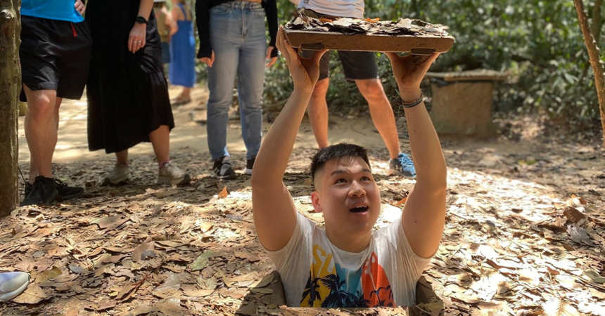 Afternoon, we leave the city and drive 60km to Cu Chi, where you can delve into the intricate system of tunnels and explore the Cu Chi Tunnel, an impressive feat of engineering that played a significant role in the Vietnam War. Afterwards, enjoy tea, cassava (guerrilla's food during the war). Once the tour is complete, we will make our way back to the city.