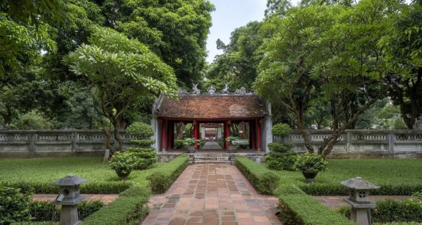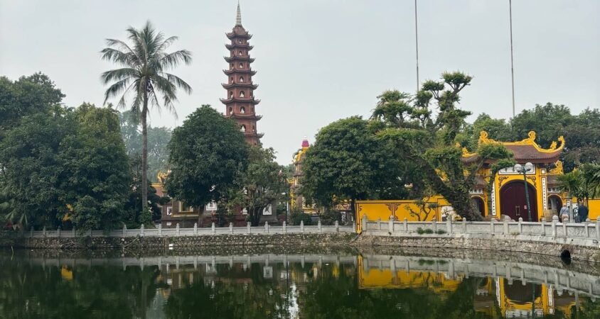 A group tour covers Hanoi's cultural sites starting at Tran Quoc Pagoda, Vietnam's oldest from the 6th century on Golden Fish Island in West Lake. From there you'll see the Ho Chi Minh Complex with his mausoleum and residences, then the distinctive One Pillar Pagoda.