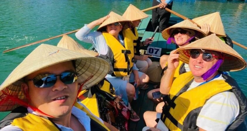 Your pickup is at 8:00 am for a drive to Ninh Binh province with a stop along the way. You'll visit Trang An, a UNESCO site known for its tunnel caves and landscape, then have buffet lunch with local dishes like goat meat, fish, and chicken (vegetarian options available).